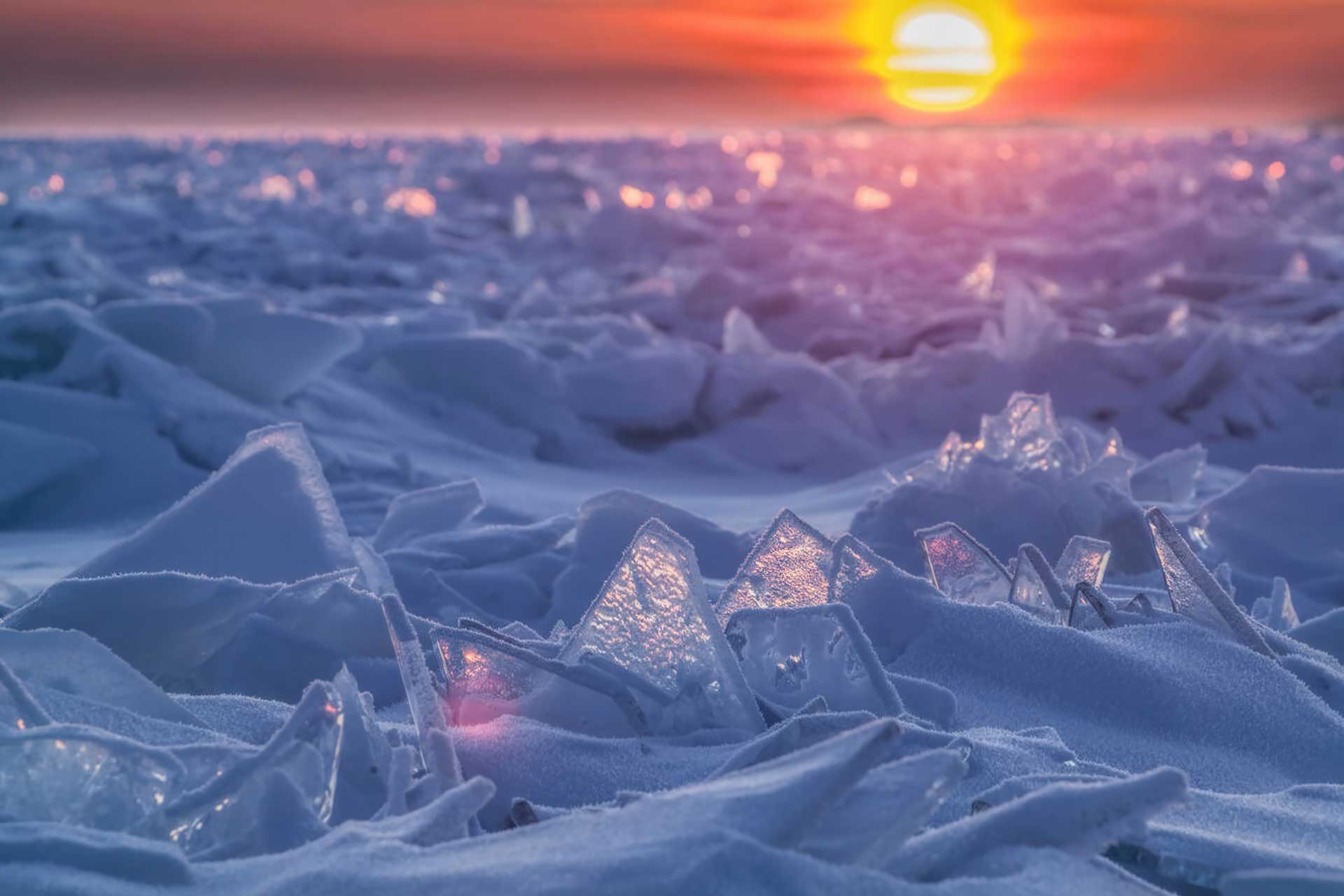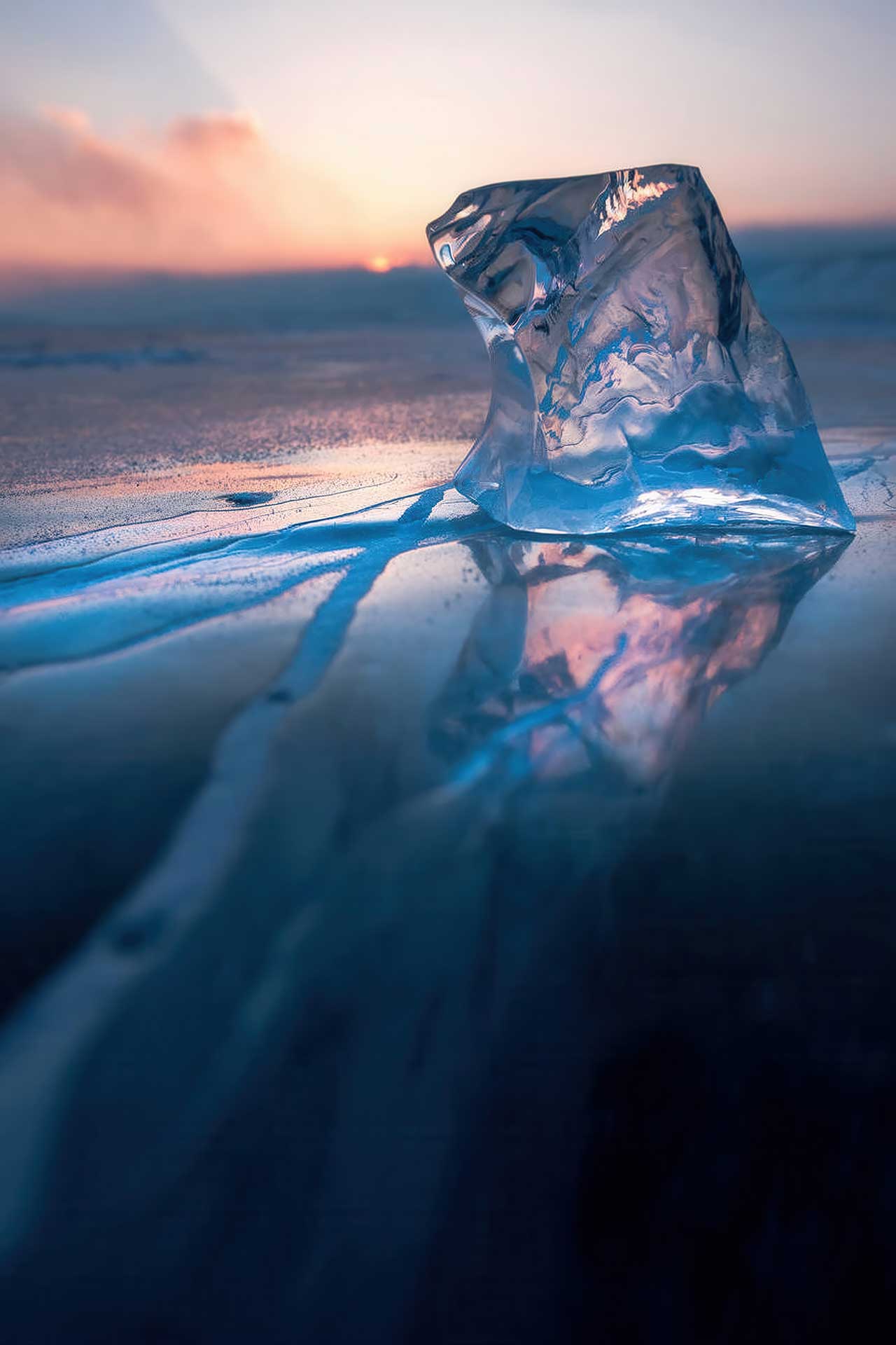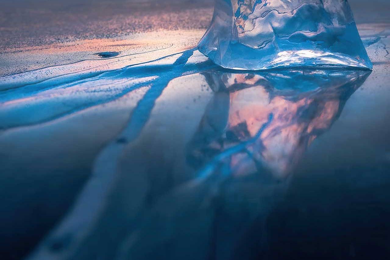 The first step onto Baikal’s frozen skin feels like stepping into the lens itself. Glass thick as a city street, etched with white seams, alive with ancient breath sealed into crystalline bubbles. Wind combs the steppe, light scatters across blue hummocks, and sound travels underfoot like a low drum. This is not a lake in winter. This is a living archive of cold.